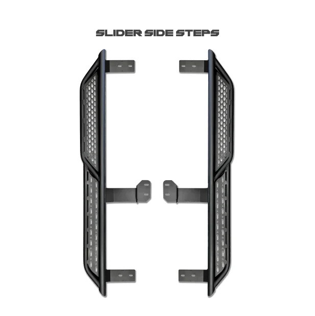 Side-Step Slider - The Tubular Side-Step Slider is perfect for lifted vehicles and owners who aren't afraid to hit the trail. These sliders protect your Grenadier's rockers while the width keeps the upper body clear from obstacles. The Step Slider also maintains a convenient height without hanging so low to get hung up on obstacles. This step makes entering and exiting a lifted rig seamless.