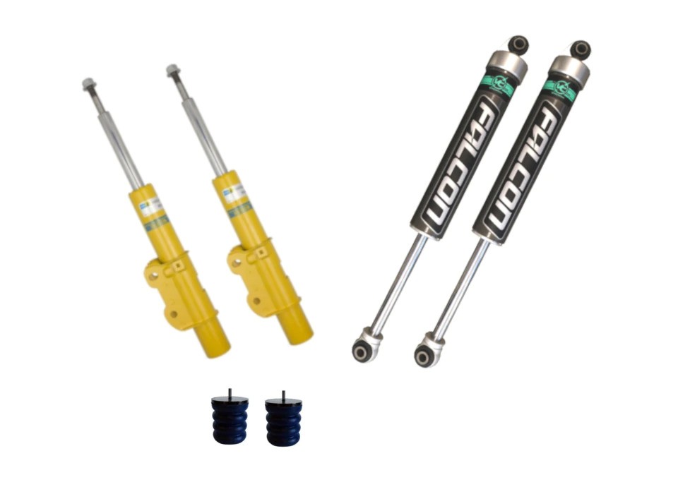 Our Stage 1 kit is the foundational package all of the other kits are built from. It represents the best bang for your buck handling upgrade, and is ideal for many users. Our tuned Falcon shocks smooth out the harshness experienced on washboard roads and shrug off abrupt impacts. Using our knowledge of suspension tuning, we’re able to minimize side to side sway and balance out jarring impacts so that your van or motorhome maintains much better control and handles more predictably. When you are lifting or upgrading your Sprinter’s suspension for a better ride, there is no better option than the Bilstein B6 Camper Tune front strut. Bilstein struts utilize a unique, velocity sensitive, digressive piston which perfectly blends stability and compliance in a heavy duty damper built to last. The Sumo Spring front replacement bump stop adds improved spring progression and bottom out resistance, futher controlling swaying and jarring impacts. This is a great kit for light weight adventure vans, work vans and lighter motorhomes. Great for older vans that need new shocks to replace high mileage units. We spec each set of Falcon shocks to your van’s weight, please be sure to weigh your van to order the correct shock damping. Vans that are near the gross vehicle weight rating (GVWR) may want to add additional rear suspension parts to reduce rear suspension sag and improve stability.